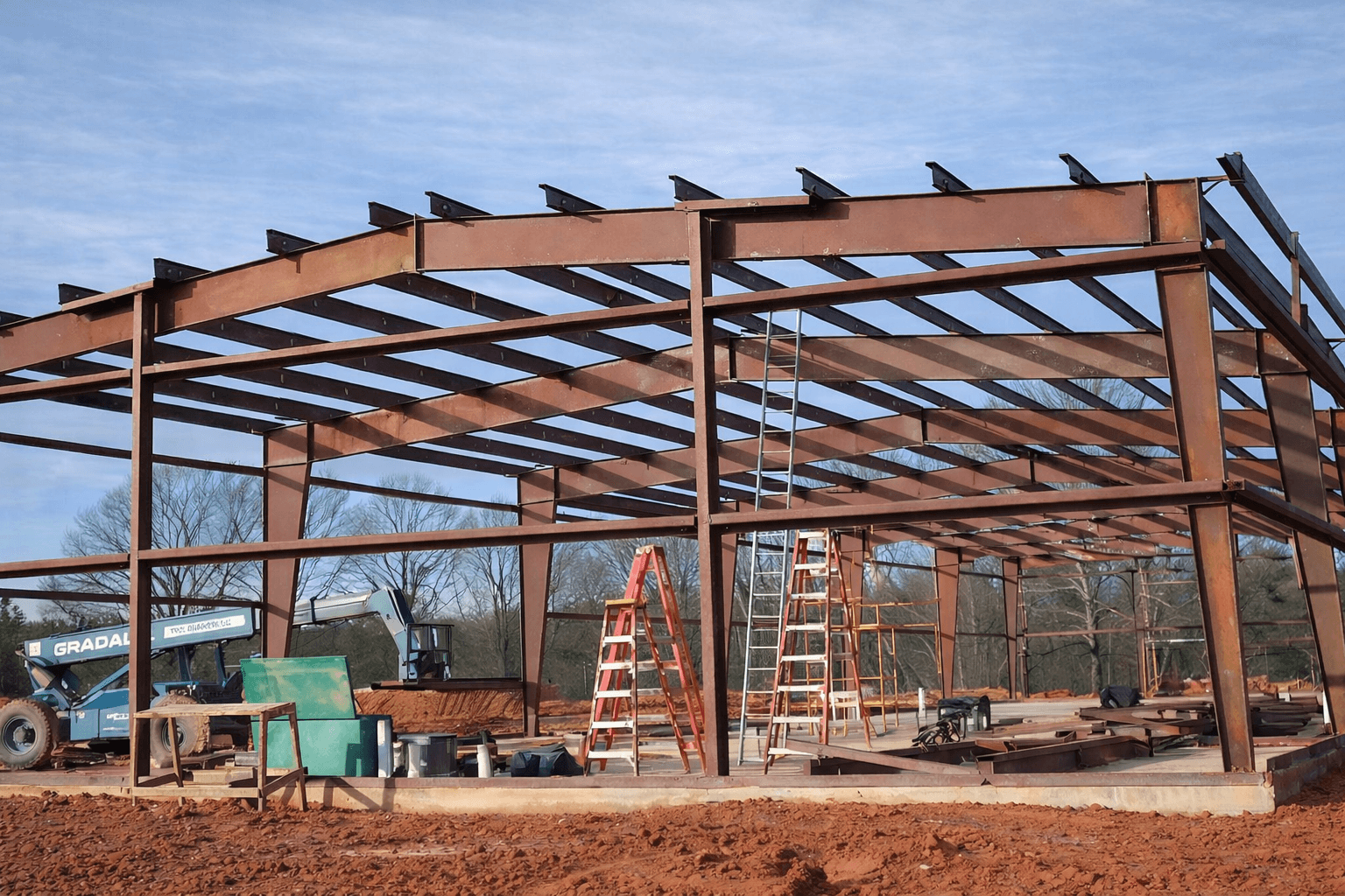 This is the crew that actually puts your building up: setting columns, connecting rafters, hanging purlins, and installing wall and roof panels, trim, and gutters. Erection cost varies by building complexity, height, site access, and geographic location. Experienced crews cost more per hour but typically finish faster with fewer punch list items.